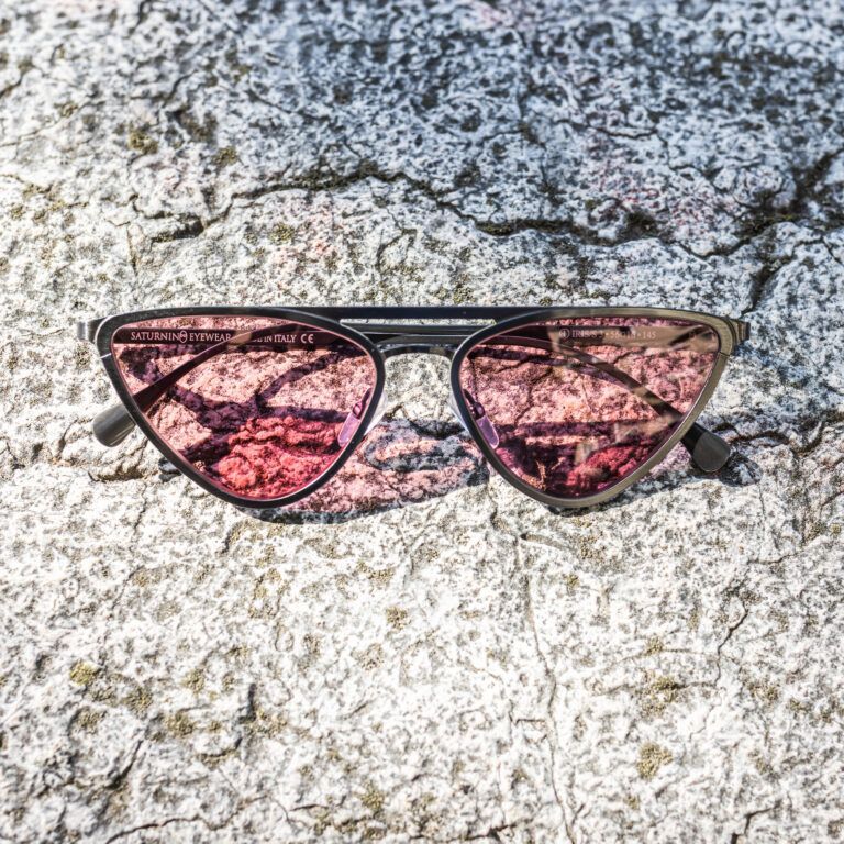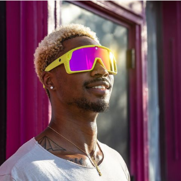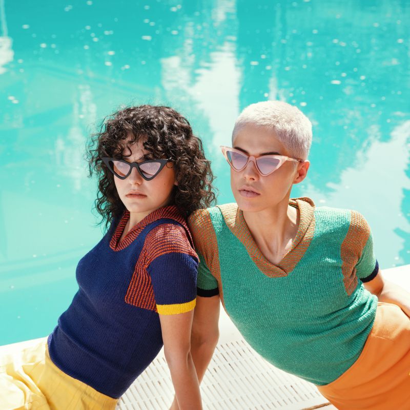 Le tonalità accese e le texture uniche di questi occhiali da sole diventano i tratti caratteristici di questo brand.